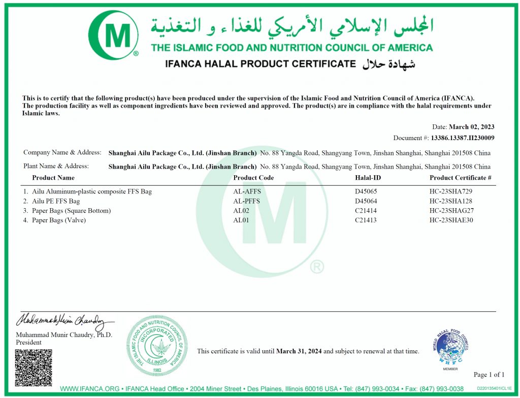 公司先后通過ISO9001:2015、ISO14001:2015、ISO45001:2018、ISO22000:2018、BRCGS、HACCP、HALAL等質量、環境、職業健康安全、食品安全領域的國際管理體系認證。同時,公司還獲得了Sedex注冊、ECOVADIS注冊等進入國際市場的相關資質。